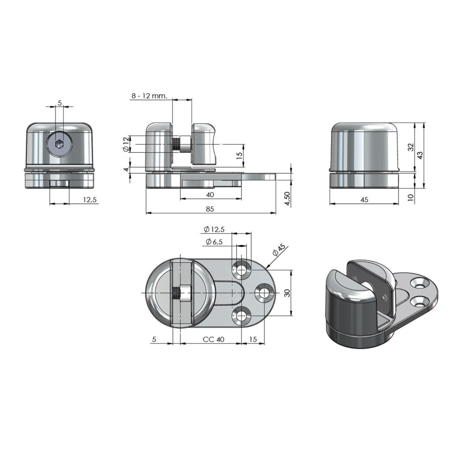 Šarke su namenjene za debljine stakla od 8 do 12mm, a maksimalna težina jednog staklenog krila ne sme biti veća od 38kg.