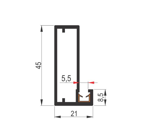 RAM 1002 A srebro mat je aluminijumski ram profil za izradu fronta od stakla debljine 4mm.