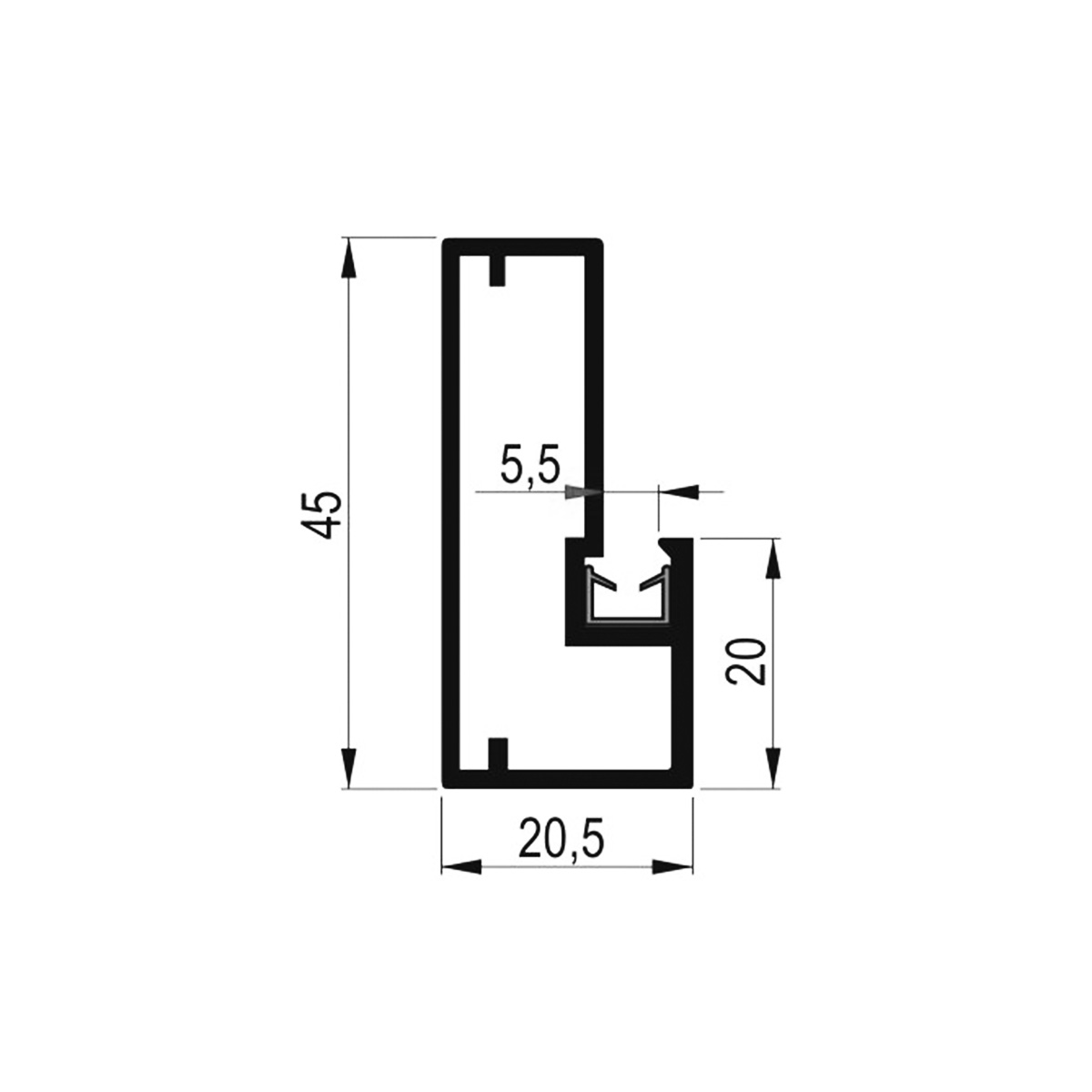 RAM 1002 D je aluminijumski ram profil za izradu fronta od stakla debljine 4mm.