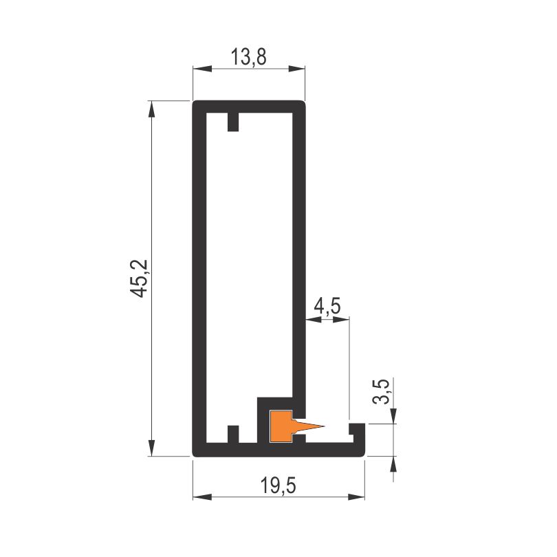 RAM 1002 N crna mat je aluminijumski ram profil za izradu fronta od stakla debljine 4mm.