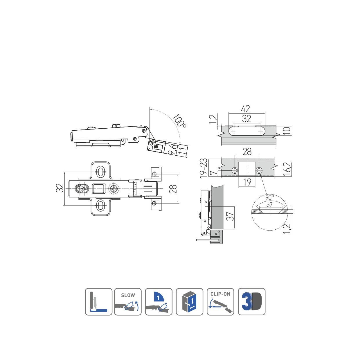 Šarka za uski aluminijumski profil 1007 - Ravna sa usporivačem