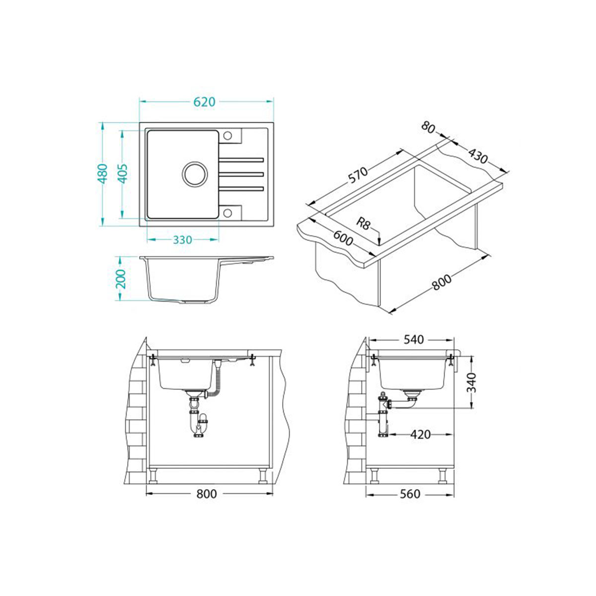 Granitni materijal granital je mešavina 70-80% granitnih čestica koje su povezane sredstvom za povezivanje visokog kvaliteta što sudoperi osigurava izdržljivost, trajnost, savitljivost i otpornost na temperaturne šokove. Pažljivo obrađena površina sudopere je glatka i na dodir ugodna, pa tako i olakšava čišćenje sudopere.