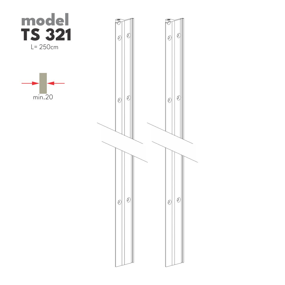 Zatezač vrata dužine 2500mm, namenjen za vrata debljine minimum 20mm.